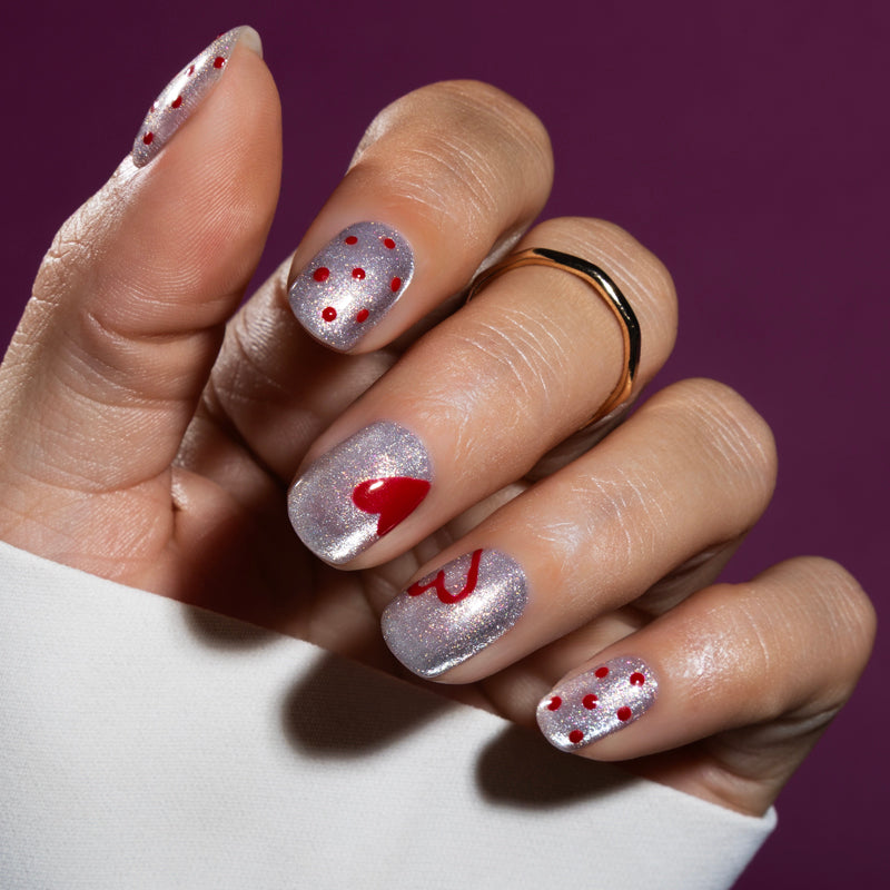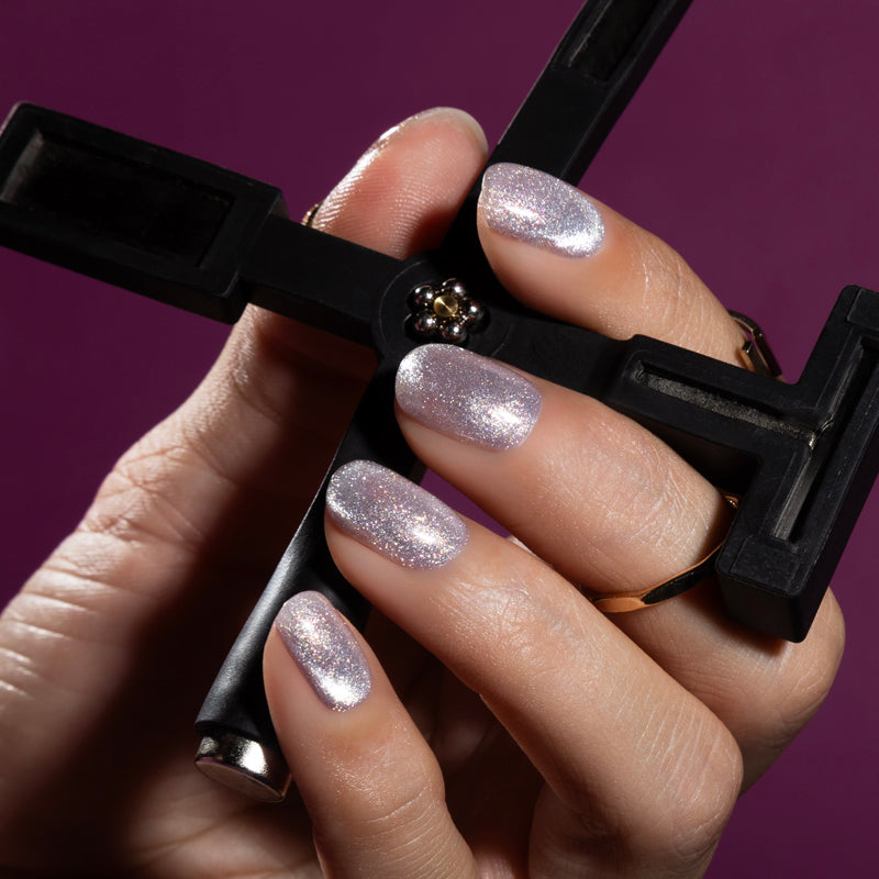 Cat Eye Pearl Kiss is een prachtige zilveren cat eye gellak met een subtiele gouden glitter er doorheen. Om het beste effect te krijgen, gebruik je deze gellak in combinatie met een magneet.